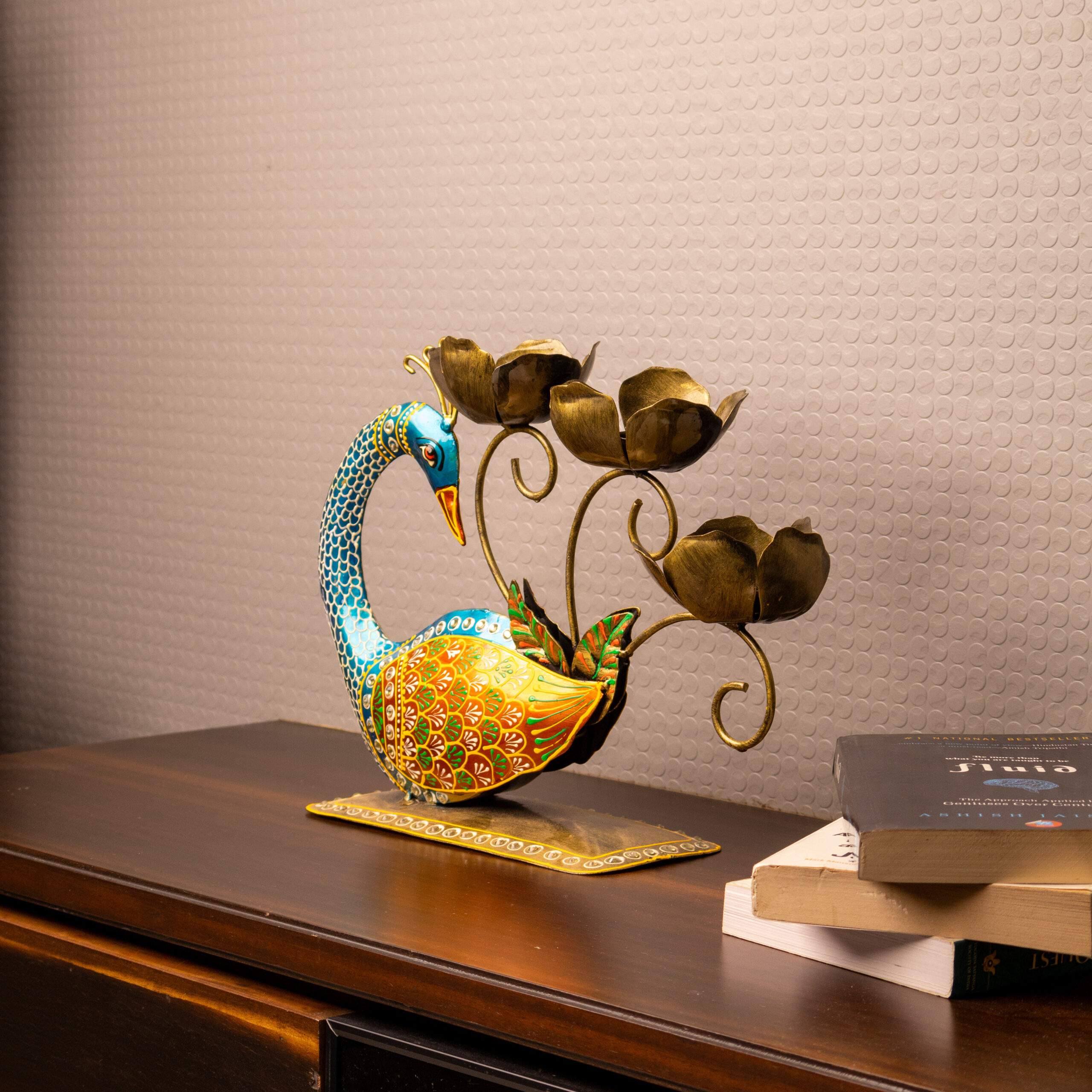 Bring home the divine glow with this premium handcrafted Peacock Tea Light Holder – designed to add spirituality, ambience, and traditional elegance to your celebrations.