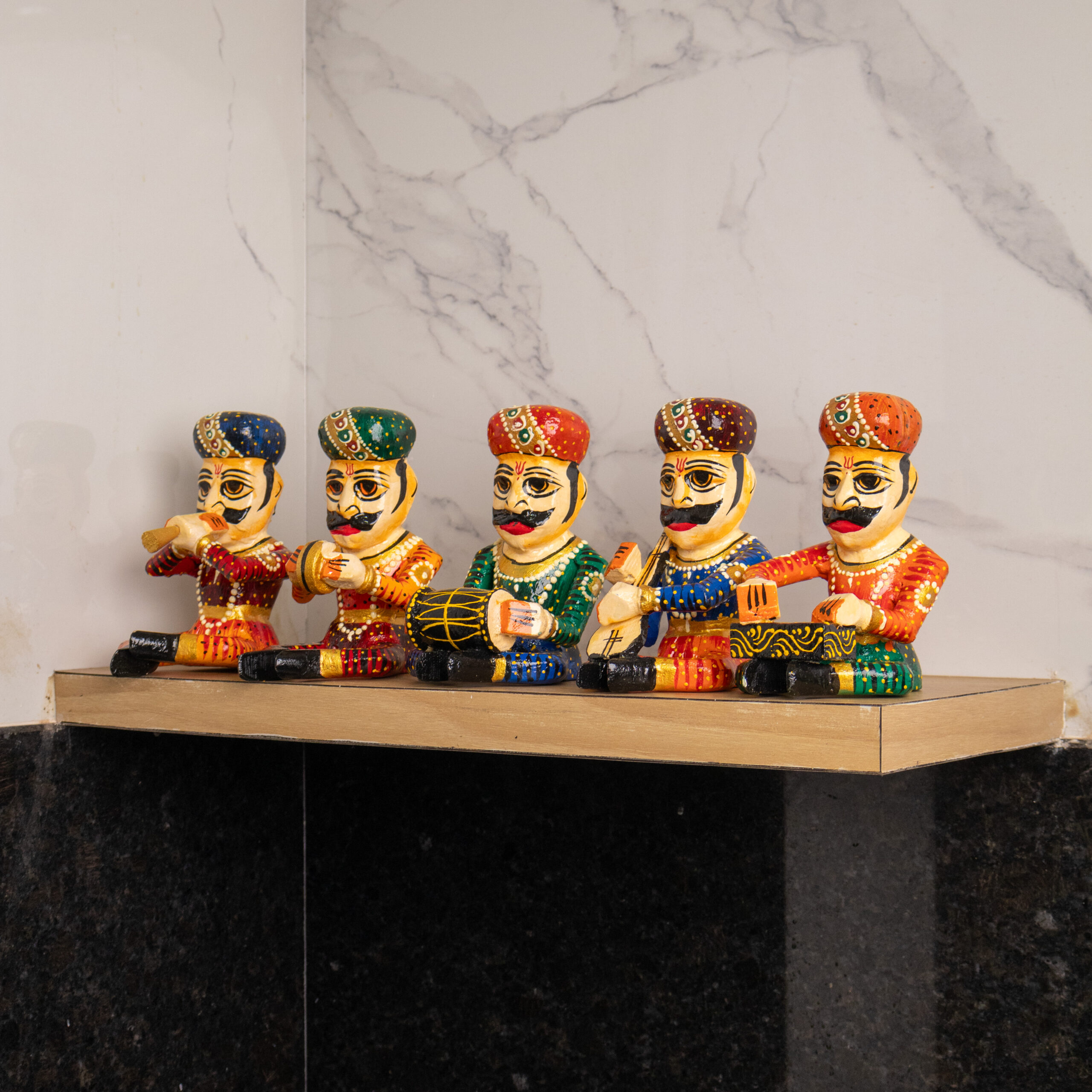 Rajasthani Wooden Musician Mini Figurines Set – Set of 5